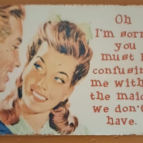 Tre veggskilt «Umgänges regler för kvinnan» med tekst på svensk