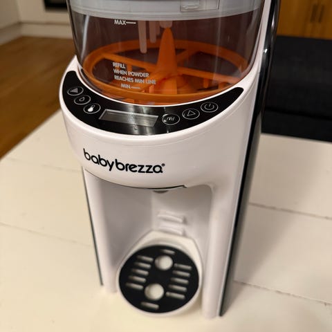 Baby Brezza Formula Pro tåteflaskemaskin i hvit og svart.