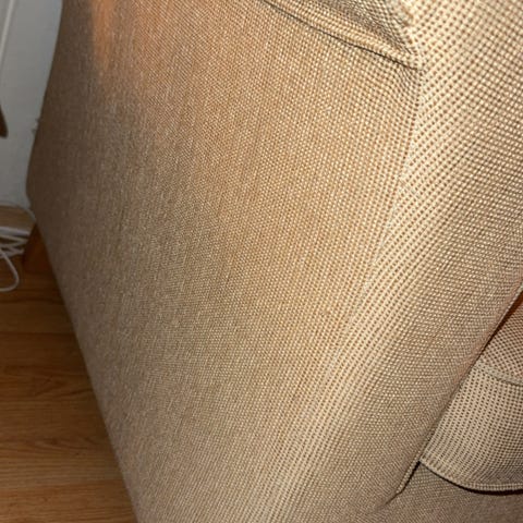 I god stand utenom ett sted hvor kattene har klort litt (se bilde). Dette er en sofa som kostet over 20k ny så vil tro den holder lenge! Har hatt den i mange år og den bærer ikke noe særlig preg av slitasje i putene. Veldig god og behagelig å sitte/ligge på. Trekkene er avtagbare og kan vaskes.