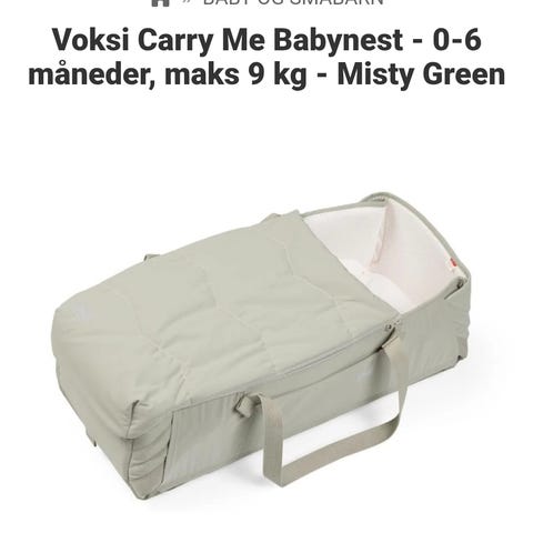 Veldig pent brukt Voksi Carry me bærebag i fargen Meadow green. Ingen bruksmerker. Brukt i ca 4mnd. Sleep carrier.