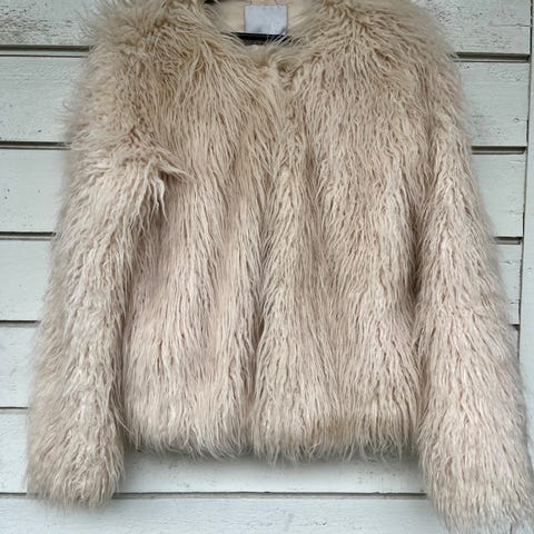 Myk og varm «pelsjakke» med deilig hette og lommer. Størrelse S, men virker litt større.