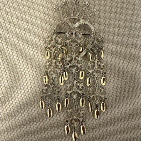 830s sølv bunadsølv rosesølje filigran hvitt sølv forgylte løv trådkantløv Agder Hardanger Voss tradisjonshåndverk norsk design vintage smykke festdrakt sølje bunadstilbehør sølvsmed håndlaget nasjonaldrakt 17. mai konfirmasjon gave samleobjekt gammelt sølv brystsølje halsring dåp vestlandsbunad agderbunad telemarkssølv bunadsølje sognesølje hvit forgylt filigranssølje bunadssmykke norskprodusert gullsmed mesterstempel kvalitetssølv antikvitet 830