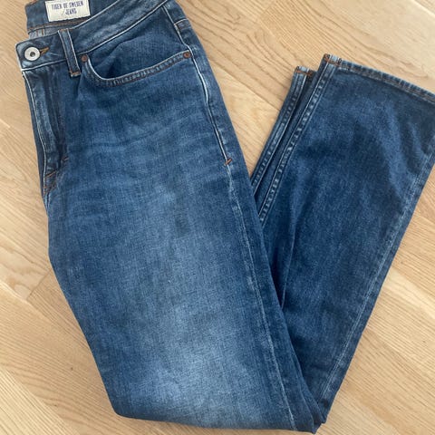 Tiger of Sweden jeans for dame i størrelse M med livvidde W29. Buksen er laget i denim og har en blå vask. Klassisk femlommersmodell med baklommer og beltehemper. Passer til hverdagsbruk og kan kombineres med ulike topper og sko for et variert uttrykk.