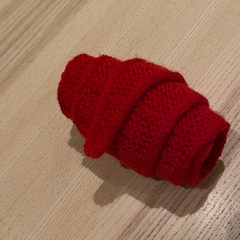 Håndstrikket trekantskjerf med i-cord-kanter. Skjerfet er strikket i fargen burgunder i woolevo wool.