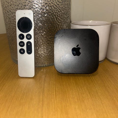 Apple TV med fjernkontroll. Strømkabel og HDMI-kabel følger med :)