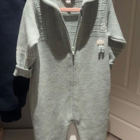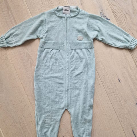 Lillelam heldress i ull for barn, unisex, størrelse 86. Heldressen har lang glidelås i front og mønsterstrikk øverst. Farge hvit og lyseblå. Egnet som varmende plagg inne eller som mellomlag under yttertøy. Laget i ull som gir god isolasjon og temperaturregulering for barnet.