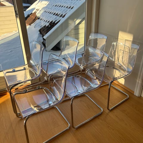 Selger to pent brukte Ikea Tobias stoler. Det er helt normal bruksslitasje på plasten med litt riper, ellers helt fint. Kan henter på Løkka