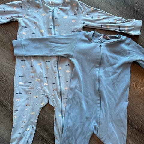 Fin tvillingmatch med fot. Str newborn - tilsvarer 44/50. Obs! Ikke fra Benetton, men fikk ikke endret fra Finn sin AI greie, de er fra et merke som heter Carter