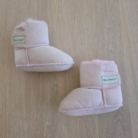 Pent brukte booties I lammeskinn fra En Fant i str S (str 17-18).
