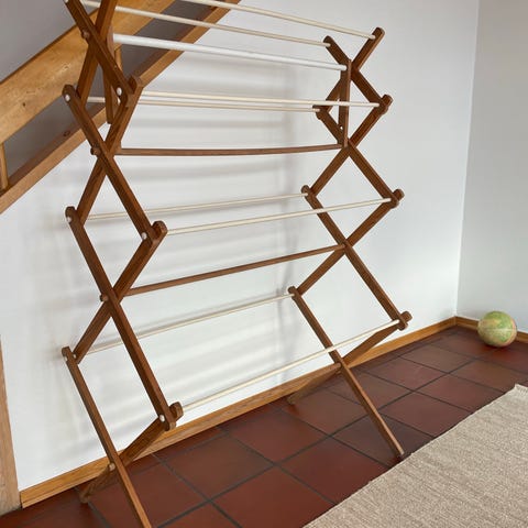 Tørkestativ sammenleggbart i metall i fargen svart. Stativet har flere nivåer med tørkeflater og er utstyrt med hjul for enkel flytting. Egnet for innendørs tørking av klær, håndklær og tekstiler. Kan klappes sammen for plassbesparende oppbevaring når det ikke er i bruk.