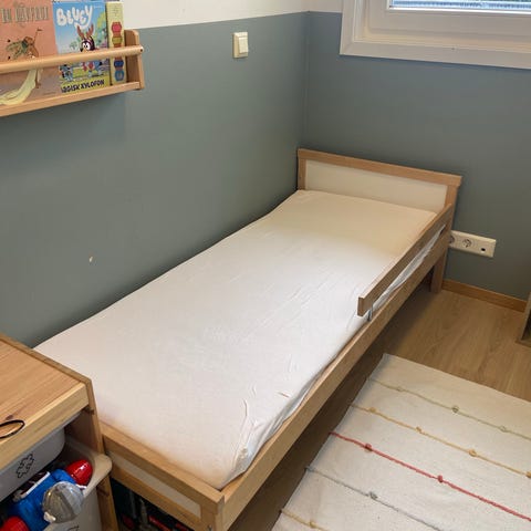 Uttrekkbar juniorseng m ribbebunn, grå, 80x200 cm