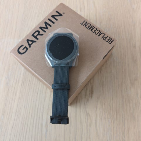 - Klokka har ny lys beige reim, men det er enkelt å bestille ny reim i hvit. Ingen riper i skjerm, små nesten usynlige riper i kanten. Klokka må lades annenhver dag.