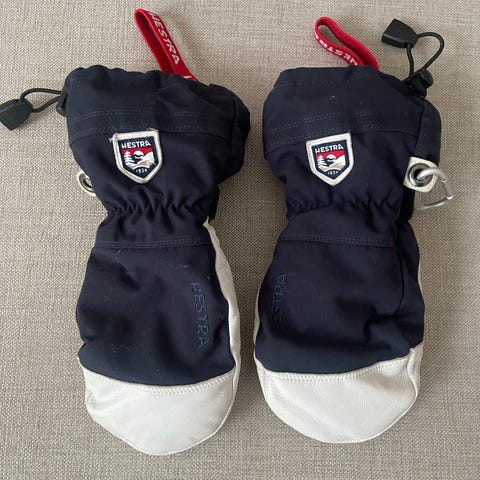 Hestra barnevotter i størrelse 6, tilsvarende ca. størrelse 140 i barnetøy. Vottene har ytterstoff i rosa med svarte og grå felt, samt grå håndflate. De har justerbar borrelåsrem ved håndleddet for bedre passform. Egnet som varme votter til barn ved langrenn og annen aktivitet i kaldt vær. Noe slitt på tomlene, men ingen hull.