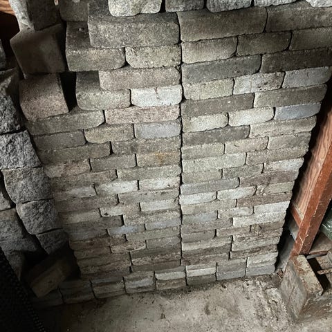 Belegningsstein i grå farge. Steinene er stablet på pall og egner seg til bruk på gårdsplass, gangsti, innkjørsel eller andre utendørs flater der det ønskes et fast og jevnt dekke.