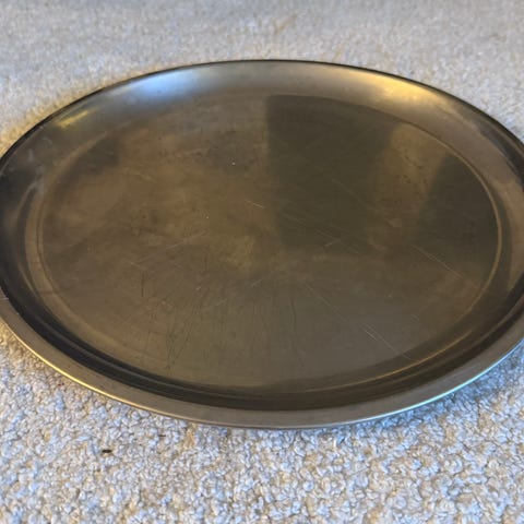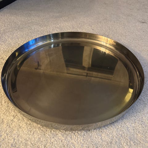 IKEA rundt serveringsfat i metall/stål. Fatet har enkel, glatt overflate med blank kant. Diameter 30cm