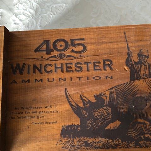 Ammunisjonskasse i metall merket "100 CAL .50". Kassen er grønn med gul skrift og har hengslet lokk med bærehåndtak på toppen. Konstruert i kraftig stål, opprinnelig laget for oppbevaring og transport av ammunisjon. Egnet til bruk som oppbevaringsboks, verktøykasse eller dekorasjon. Ytre slitasje og merker i lakken fins