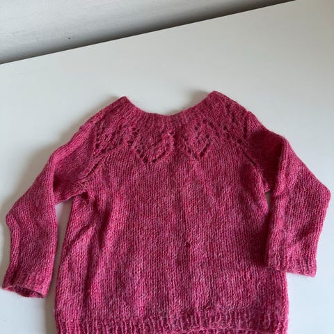 Håndstrikket. Antar at denne passer best for jente ca 8år. Målebånd ef lagt på foto for å beskrive størrelse.