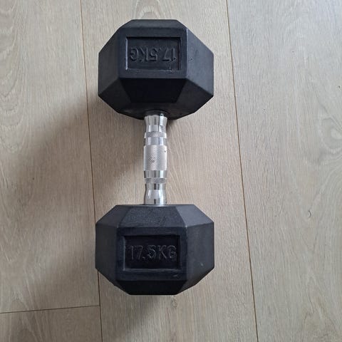 To stykk hexagon manualer på 4 kg selges samlet for 100 kr.