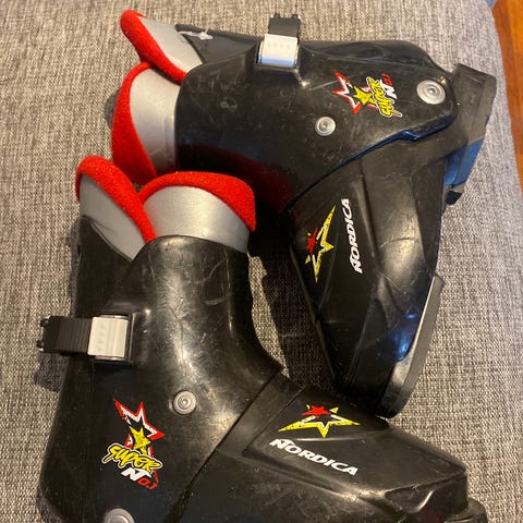 Slalomstøvel str 150-165 som tilsvarer str 24-26 ca. Brukt av et barn.