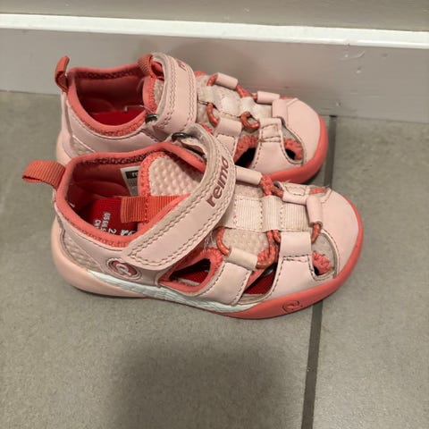 Reima sandaler for barn, unisexmodell i rosa toner. Lukket tå og hæl med beskyttende kanter og justerbar borrelås over vristen. Overdel i tekstil og syntetisk materiale med pustende meshpartier. Myk innersåle og fleksibel yttersåle med mønster for godt grep. Egnet til hverdagsbruk og utendørslek i varme perioder.