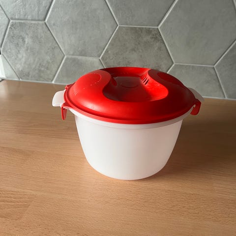 Rød beholder til å bruke i mikrobølgeovn