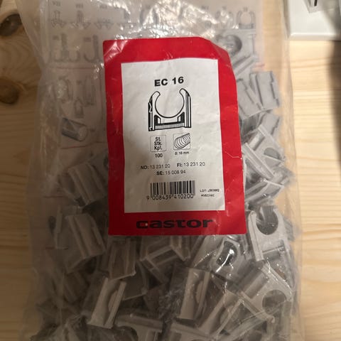 Rundt 95stk Castor EG 20 rørklips 20 mm i grå plast.