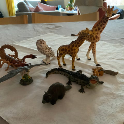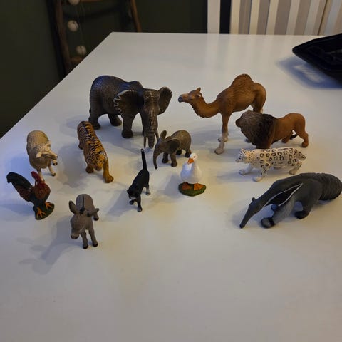 13 stykk dyrefigurer selges samlet. De fleste fra Papo kjøpt hos Sprell.