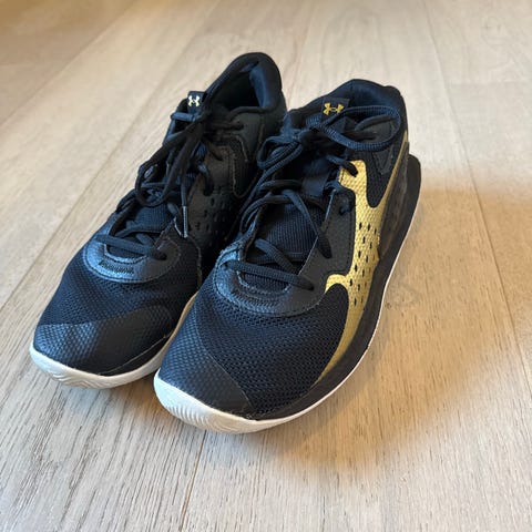 - Farge: Svart med gule detaljer, hvit/grå såle