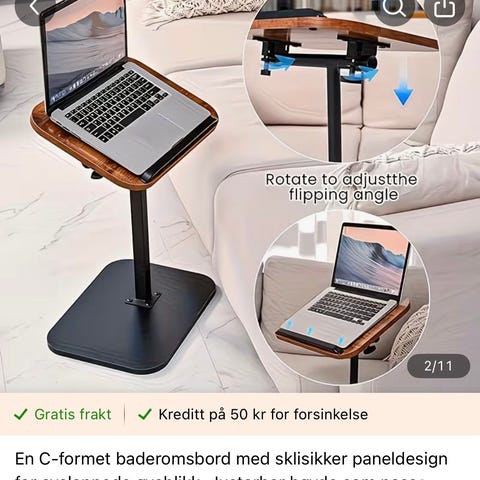 Multifunksjonelt roterende sidebord | vanntett, slitesterk overflate, metallforsterket stativ, justerbar høyde 45.8-79.3cm, 360° rotasjon, sklisikker gummipute, , egnet for bærbare datamaskiner/dokumenter.Kan brukes som vanlig bord også.