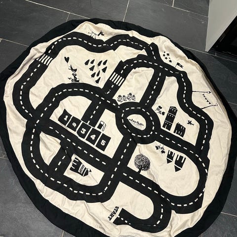 Fall-/ lekematte i lekker hvit, lys grå og mørk grå kombinasjon. 72 trekanter og 24 kantbrikker. Utallige kombinasjoner og muligheter. Oppbevaringspose med håndtak.