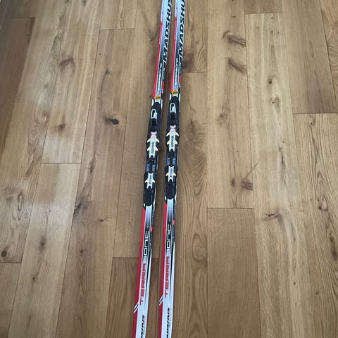 153cm Rossignol Delta SK skating med rottefella classic bindinger som mangler bakerste binding plata på en ski. Sålen var full av støv på bildet men det er riper også der. 400kr