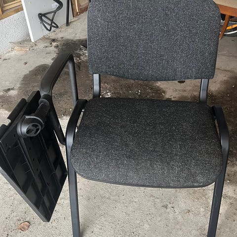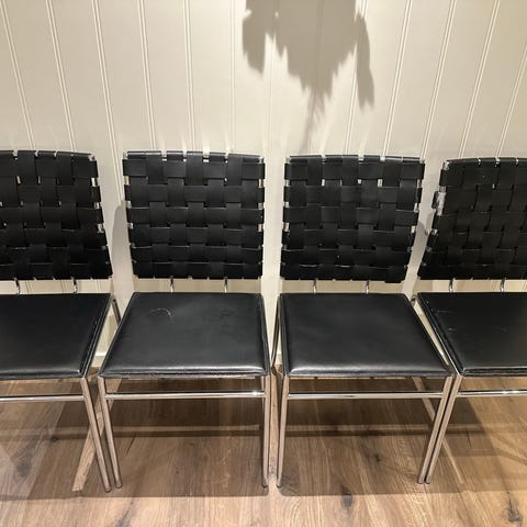 Gir bort tre svarte stoler. De er gode å sitte på. Ryggen er litt fleksibel.