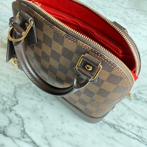 Helt ny og ubrukt. Kjøpt til Louis Vuitton Alma, men kan brukes til alle vesker. Det anbefales at organiseren litt mindre enn vesken. Bredde 32cm. Høyde 14,5 cm Dybde 14cm. Vesken holdes godt i fasong med denne organisereren. Den er i flott tykt stabilt stoff, og har mange ulike rom og lommer.