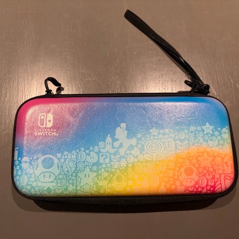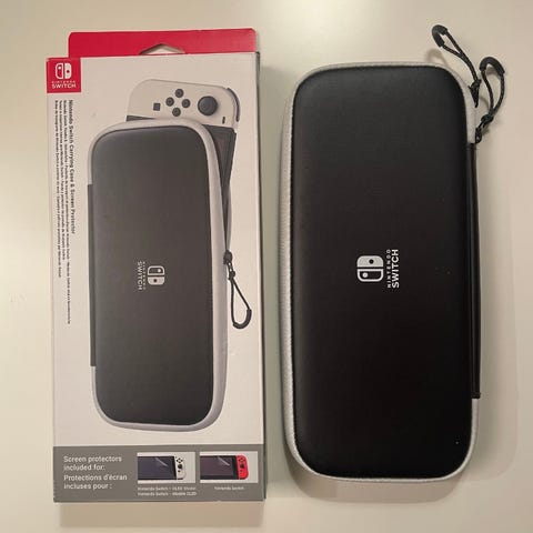 Nintendo Switch bæreetui i svart farge. Etuiet er tilpasset Nintendo Switch-konsoll og har hard utside for beskyttelse under oppbevaring og transport. Glidelåslukking og håndreim gjør det enkelt å bære med seg. Egnet for bruk hjemme eller på reise for å beskytte Nintendo Switch 1 og OLED mot riper og støt.