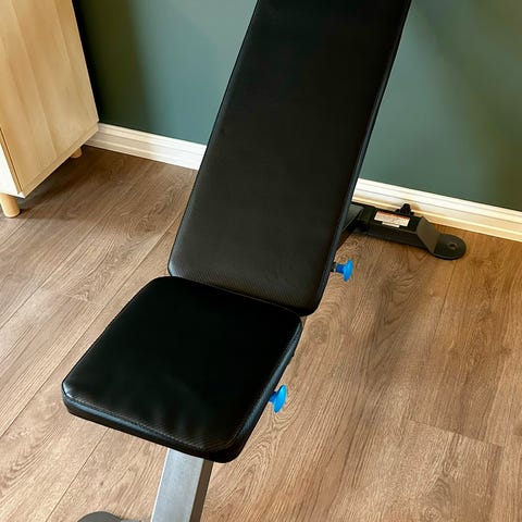 Benken har polstret liggeflate og solid ramme. Selges kun komplett. Må hentes.