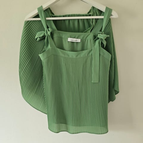 Har kun brukt toppen ett par ganger. Skjørtet ble aldri brukt. Ingen feil eller mangler, helt strøkent.