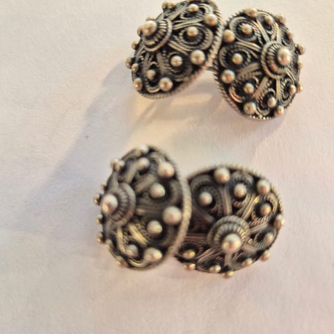 Sølje halssølje sølv 830s vintage retro Sylvsmidja Voss norsk design bunadssølv tilbehør filigran smykke samleobjekt håndverk vossasølv oksidert sølv bunad tilbehør tradisjon sølvsmykke Oslobunad Valdres Romerike Trønderbunad lauv halsknapp brystknapp lauv løv festdrakt bunad 830 bunad