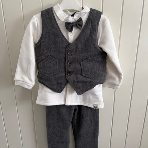 Svært pent brukt sett til gutt i str 104 som består av skjorte, vest, bukse og sløyfe. Settet er vasket og klar for ny eier. Kommer fra røyk- og dyrefritt hjem 🦋