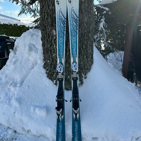 Völkl alpinski i hvit og rød farge med integrerte Marker bindinger. Skiene har tradisjonell carvingshape og sort såle. Bindingene er montert på skinene og har justerbare hæl- og tåstykker. Egner seg til vanlig alpinkjøring i preparerte bakker.