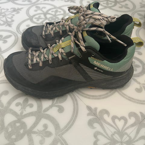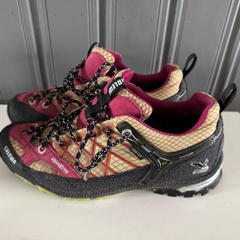 Timberland joggesko i størrelse 37. Modellen har overdel i tekstil og syntetisk materiale med mesh-paneler for ventilasjon. Skoene er flerfarget med hovedfarger lilla, svart, grå og neongrønn, og har snøring med mønstrede lisser. Kraftig yttersåle gir godt grep på ulike underlag. Egnet som fritids- og hverdagssko, samt til lett turbruk.