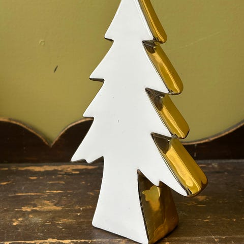 Cooee juletre dekorasjon i hvit farge. Minimalistisk treform montert på en klar sokkel, plexiglass. Passer som borddekorasjon eller som del av et stilleben i stue, gang eller på hylle. Egnet for bruk gjennom jul og ulike årstider der man ønsker et enkelt, grafisk preg i interiøret. 15 cm.