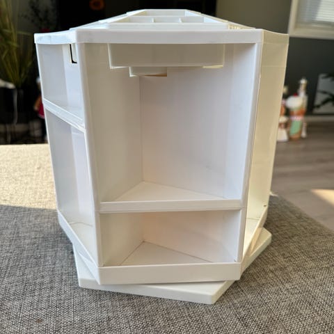 Gir bort hvit oppbevaring til sminke. Kan også brukes til kontorrekvisita etc. Tilhørte et rundt stativ, men har den siste tiden blitt brukt alene. Kan hentes på Bakklandet/Møllenberg :)