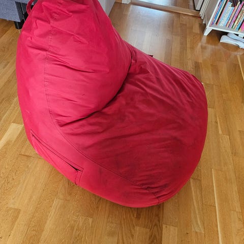 Fin og romslig saccosekk. Kan også "brettes* ut og bli større. Fresh farge