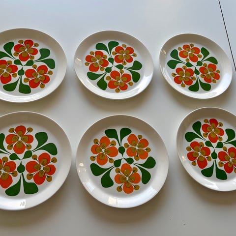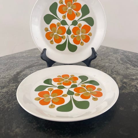 To asjetter D: 18 cm til serviset Laila fra Stavangerflint. Begge i fin stand uten skår, har svake krakeleringer, frisk blå farge og blank glasur. Selges samlet kr. 150,-