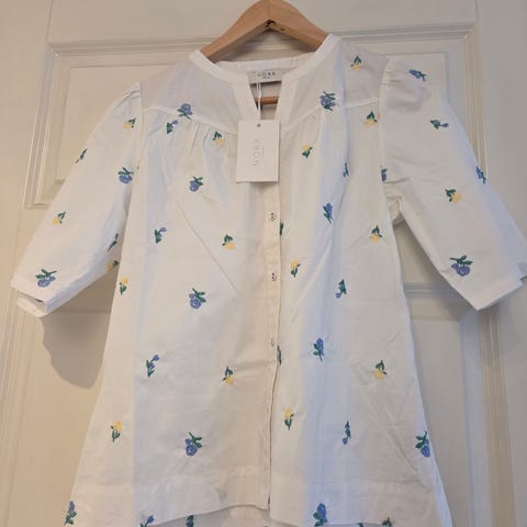 Kjolen er kort, passer best om du er mellom 155-165 høy. Hvis høyere eller lang overkropp anbefales thigts under😊