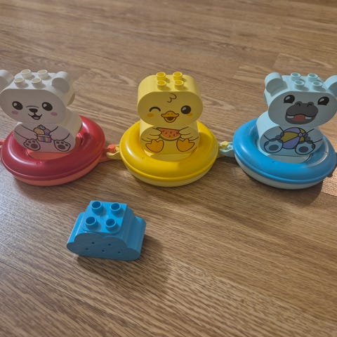 Lego Duplo Friends byggesett badeleker dyr. Settet inneholder Duplo-klosser som kan bygges til flere dyrefigurer på flytende ringer til bruk i badekar eller vannlek. Delene er store og enkle å gripe for små barn. Passer for barn fra 1,5 år og oppover, og kan kombineres med andre Lego Duplo-sett i samme serie.