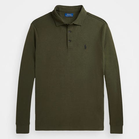 Ralph Lauren Polo langermet piquegenser for herre i størrelse S. Genseren er olivengrønn og laget av bomull. Modellen er slim fit med klassisk polokrage. Genseren er en Slim Fit Long Sleeve Polo Olive.