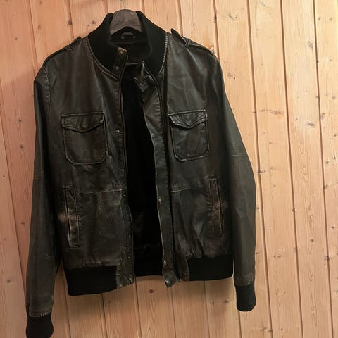 Herrejakke i skinn. Passer nok best en L