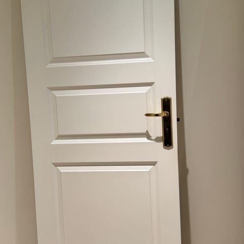 Innerdør i hvit utførelse med tre rektangulære, profilerte fyllinger. God lyddemping, massivtre.Døren har klassisk utseende som passer i de fleste innemiljøer. Leveres med dørhåndtak og låskasse slik det vises på bildene. Egnet som innvendig dør mellom rom i bolig eller tilsvarende innendørs bruk. 90x210.