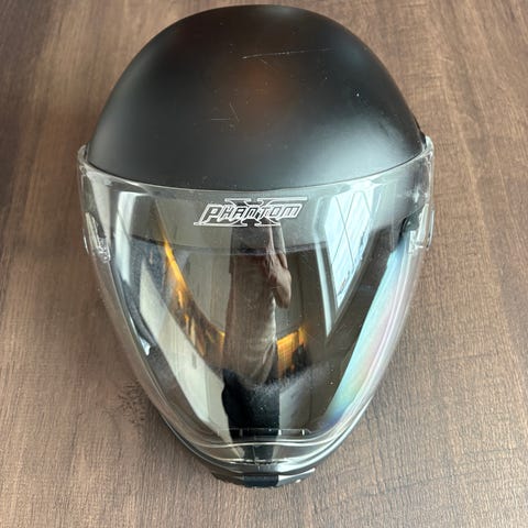 Et par små kosmetiske striper, ellers ikke brukt, bare prøvd. Den er en størrelse L, men er litt liten i størrelse . Mc hjelm